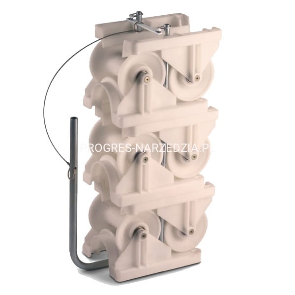 Rolka kablowa Vetter 202417. Wykonana z wysokiej jakości tworzywa, osadzona na łożyskowanej osi. Rozwiązanie dedykowane do prac w trudno dostępnym terenie, gdzie trzeba przenosić rolki na znaczne odległości. Dla łatwiejszego transportu rolki można łączyć w pakiety po 6 szt. (dedykowany uchwyt- ramka nośna Vetter 202418).