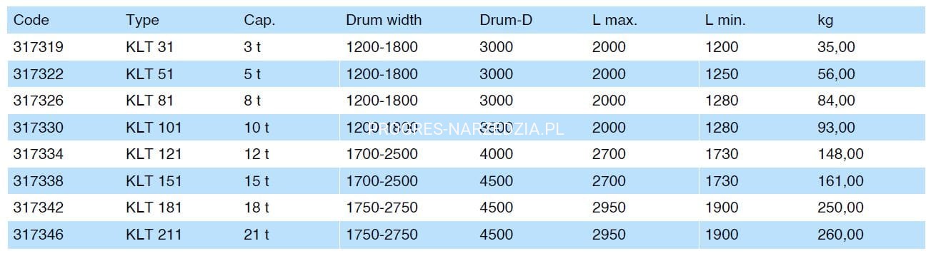Trawers do bezpiecznego podnoszenia i transportu bębnów kablowych. Zbudowany jest z teleskopowej belki konstrukcyjnej, zwanej również belką rozkładającą, z zawieszeniem łańcucha i 2 wieszakami linowymi. Maksymalny udźwig do 10t, szerokość bębna 1200-1800 mm.